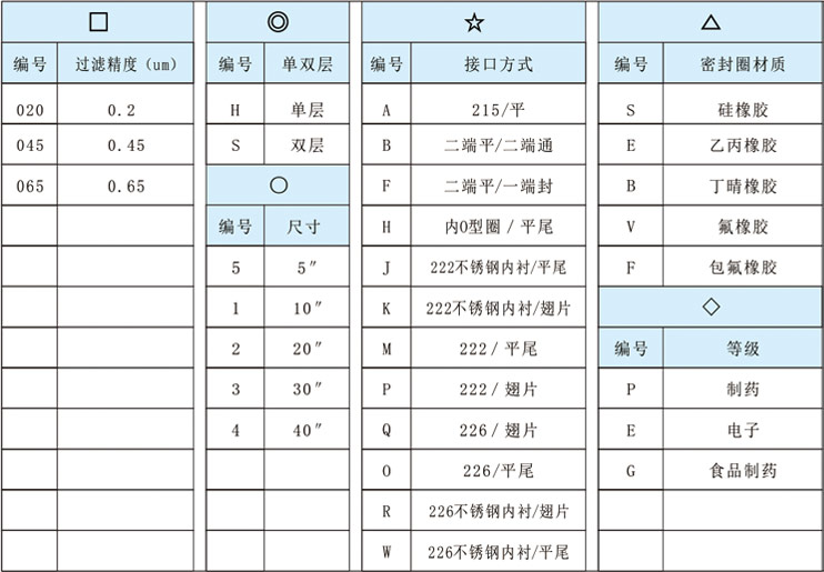 滤芯订购信息