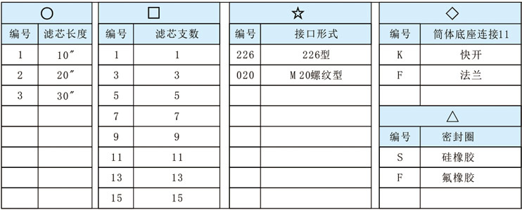 滤芯订购信息